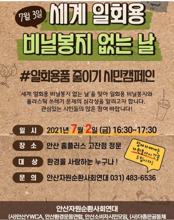 올해 비닐봉투 없는 날을 맞아 안산에서 '일회용품 줄이기 시민캠페인'을 벌인다는 소식입니다.