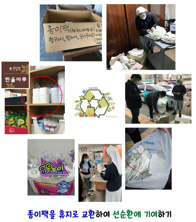 수녀원에서도 본원과 병원분원에서 지난 몇 달간 모은 종이팩을 며칠 전 지동 주민 센터에서 휴지로 교환하여