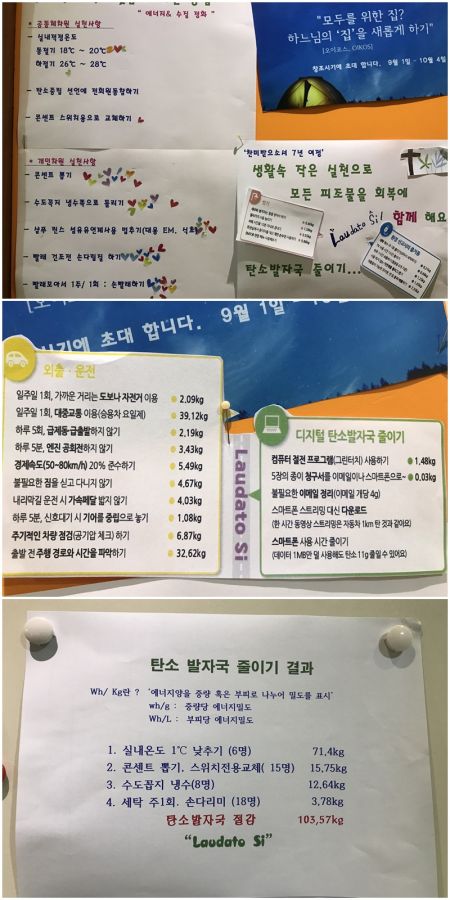 사진출처: 아주경제 수녀원에서는 이번 창조시기를 맞아 우리가 실천하고 있는 것들, 더 실천할 수 있는 것들을 구체적으로 확인할 수 있도록 개인적, 공동체적으로 제시된 실천사항 항목에 각자가 스티커를 붙여보고 있습니다.