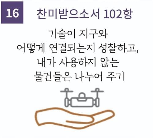 JPIC 글보기대림시기 생태달력_2020년 주교회의 생태환경위원회 관리자조회수 356 2020-11-28 13:43 우리 공동의 집을 보호하기 위해 힘을 모으도록 초대하기위해 주교회의 생태환경위원회의에서 발행한 2020년 대림시기 생태달력입니다. 회칙 '찬미받으소서'의 관련된 항을 매일 읽고 성찰, 묵상, 행동하는 은총의 대림시기가 되시길 바랍니다. 첨부파일대림생태달력(최종).pdf (1.81MB)ADVENT ECO CALENDER 2020.pdf (1.33MB) 목록 댓글 [0] 더보기이전'새활용'이란?관리자2020-12-28다음작은 플라스틱 모아서 소품으로 탄생관리자2020-11-19 Powered by MangBoard | 워드프레스 쇼핑몰 망보드