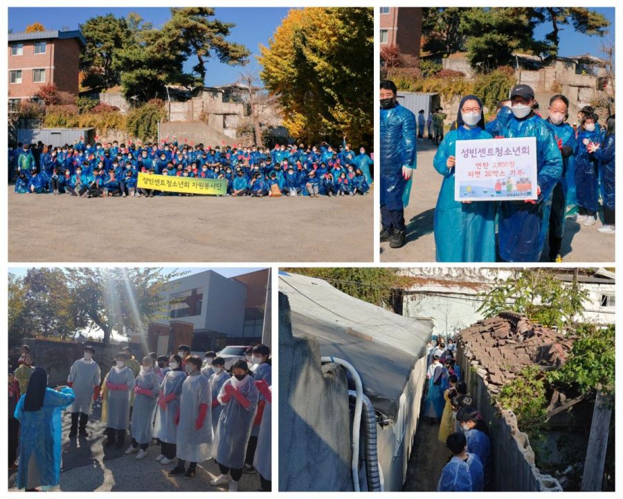 11월 6일, 빈청 학생과 지도자, 졸업생과 학부모 뿐 아니라 다른 몇몇 본당 신자들의 도움도 받아 산동네 일곱 가정에 연탄과 라면을 배달해드렸습니다. 빈마을 축제 때 방문하여 합창 공연을 하기도 했던 성복동 성당의 주일학교 학생들과 신부님, 부모님들도 동참해주셔서 봉사 체험도 하고 연탄 배달에 큰 도움이 되었다고 합니다.