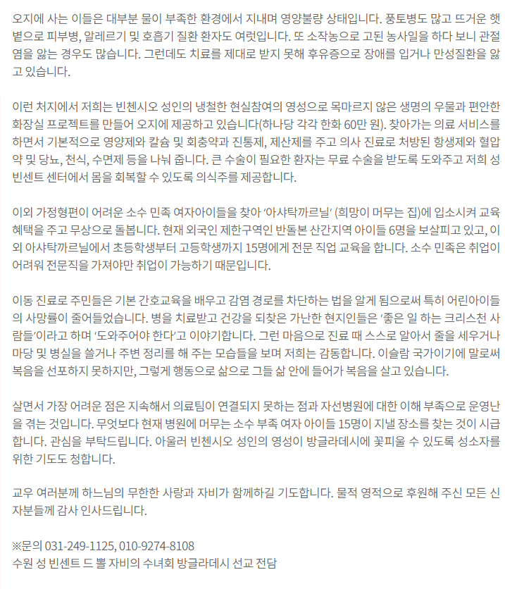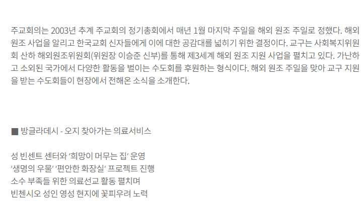 해외 원조 주일을 맞아 가톨릭 신문 수원판에서 다룬 기사입니다.