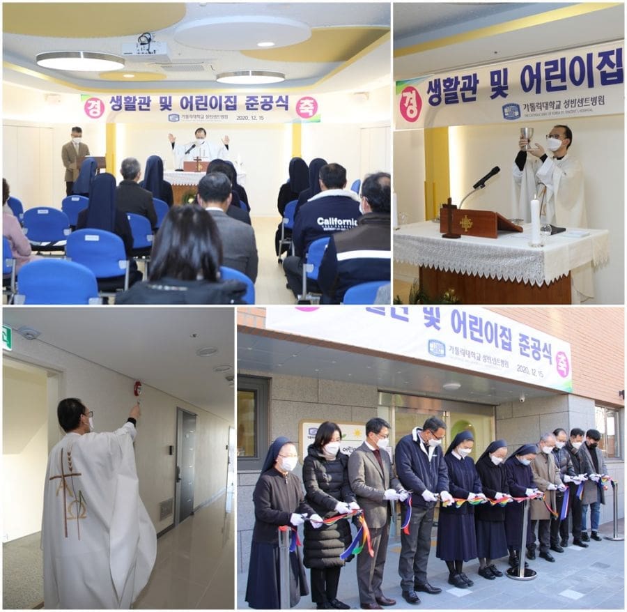 오랜 숙원 사업이던 성빈센트병원 간호사 기숙사와 직원들을 위한 어린이집이 완공되어 병원 원목팀의 이상윤 베드로 신부님의 주례로 공사관계자분들과 전 어린이집 원장님, 병원관계자분들을 모시고 봉헌미사가 봉헌되었습니다.