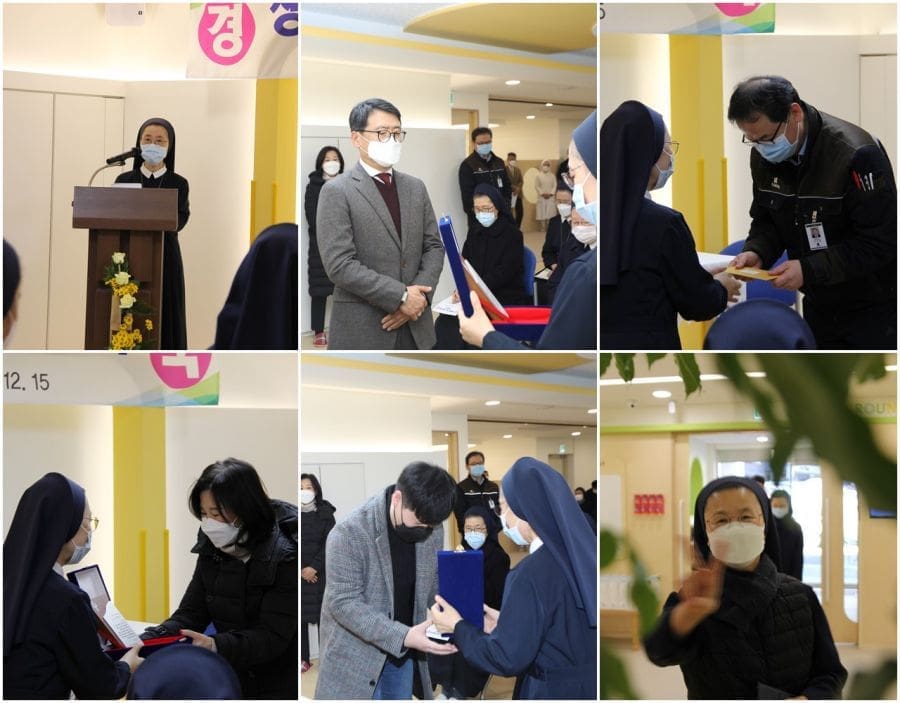 3층부터 9층까지는 간호사들의 개인 숙소와 간단한 취사가 가능한 공동생활공간으로 꾸며졌습니다. 미사 후 행사 중에 현장 소장님의 소개 말씀이 있었는데요. 각 호실에 세탁기, 냉장고, 침실, 욕실 등이 잘 갖춰져 있어 입주해서 지내고 있는 분들의 만족도가 높다고 합니다. 서로에 대한 배려로 성장하는 우리 사회에서 타 병원들의 모범 사례가 될 수 있을 것이며, 무사고로 공사가 마무리된 것을 두고 수녀님들의 기도에 대해 감사드린다는 말씀을 덧붙이셨습니다.