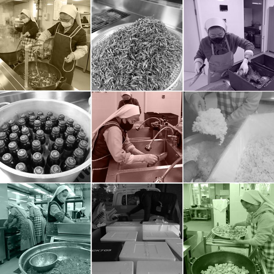 본원과 병원 분원 수녀님들이 여러가지 맛있는 반찬과 따뜻한 국,