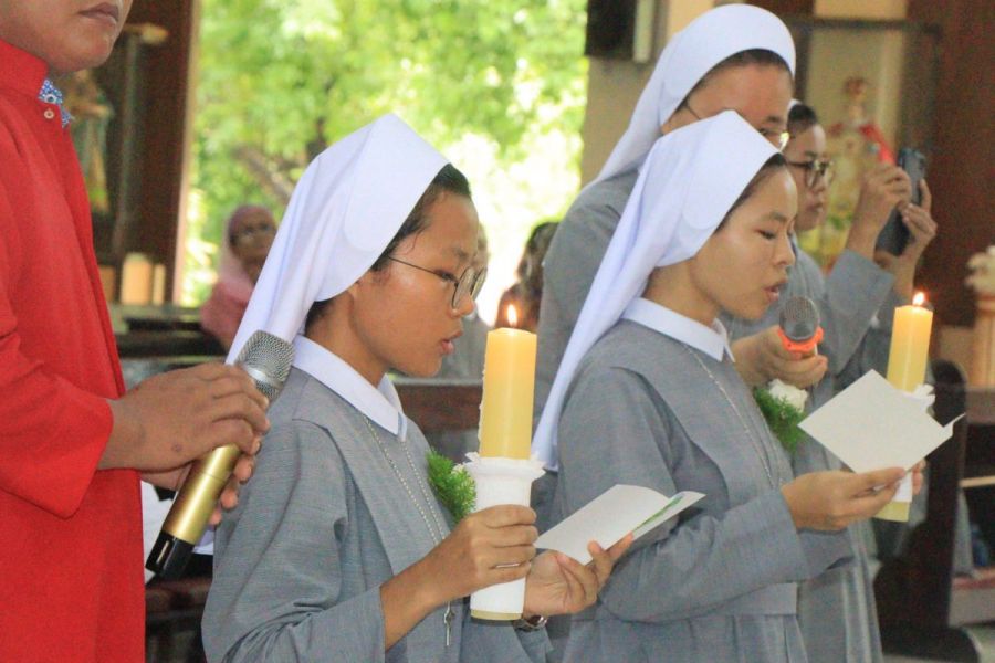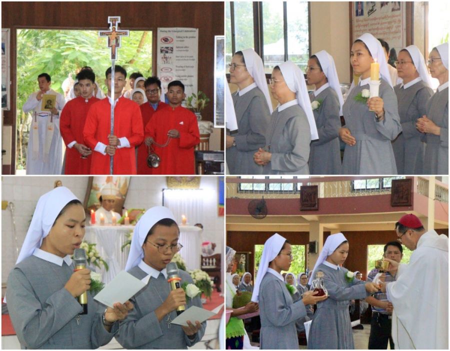 8월 6일, 주님 변모 축일에 미얀마 양곤 피터 앤 폴 성당에서 빈첸시아 수녀님과 루이즈 수녀님의 첫서원 미사가 있었습니다.