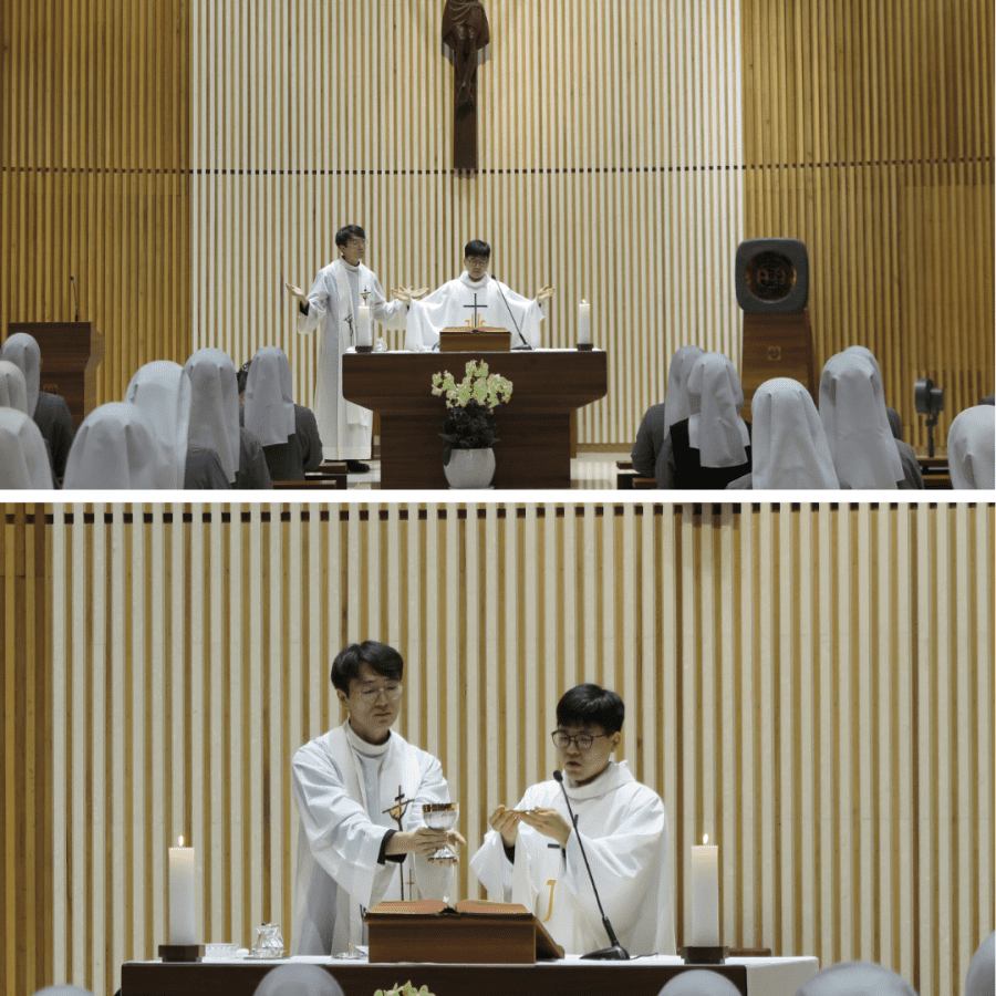 지난 7월 3일에 명동성당에서 네 명의 사제서품 미사가 있었습니다.  그 중 최재석 프란치스코 신부님과 도윤호 세례자 요한 신부님이 11일 아침 수녀원에서 첫미사를 봉헌하였습니다.