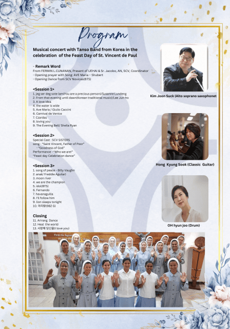 양성소에서는 빈센트 성인 축일에 한국에서 방문한 탄소밴드와 함께 빠야따스에서 봉사자들과 신자들을 초대하여 음악 공연을 펼쳤습니다. 또 지난 달에 방글라데시에서 온 세 명의 지원자들이 10월 1일 청원기 입회를 한 소식도 보내주셨습니다.