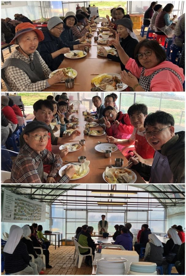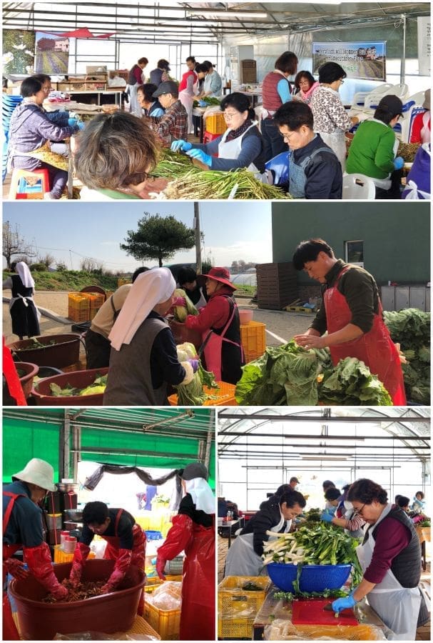 집 김치는 사서 드신다면서도 "나는 따뜻하게 지낼 집도 있고, 세 끼 걱정 안하고 사니 우리 주님들께 조금이나마 나눠드리고 싶다"는 봉사자, 후원자님들의 마음에서 저희 수녀들은 큰 감동을 받았는데, 봉사자들은 소금, 고춧가루 온 몸에 묻혀가며 열심히 일하시는 수녀님들 모습에 또한 감동 받았다고 하시니 함께 모인 서로의 희생에 좋은 기운이 확산되는 것을 실감하게 됩니다.