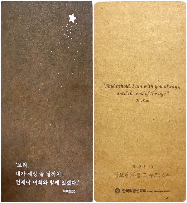 1월 26일에는 지난 20일 서품을 받으신 한국 외방 선교회 새사제 남보현 샤를 드 푸코 신부님과 손민호 프란치스코 부제님이 오셔서 첫미사를 봉헌해주셨습니다.  당신을 사제의 길로 부르시어 복자 샤를 드 푸코와 같은 삶의 변화를 체험하신 신부님은 부제품 때 복자(올해 5월 성인품 예정)를 주보성인으로 새로 모셨다고 합니다.    이제 성인의 삶을 따라 낯선 땅 멕시코로 선교를 떠나신다고 합니다.