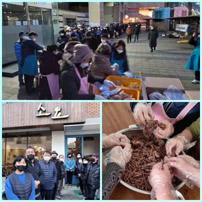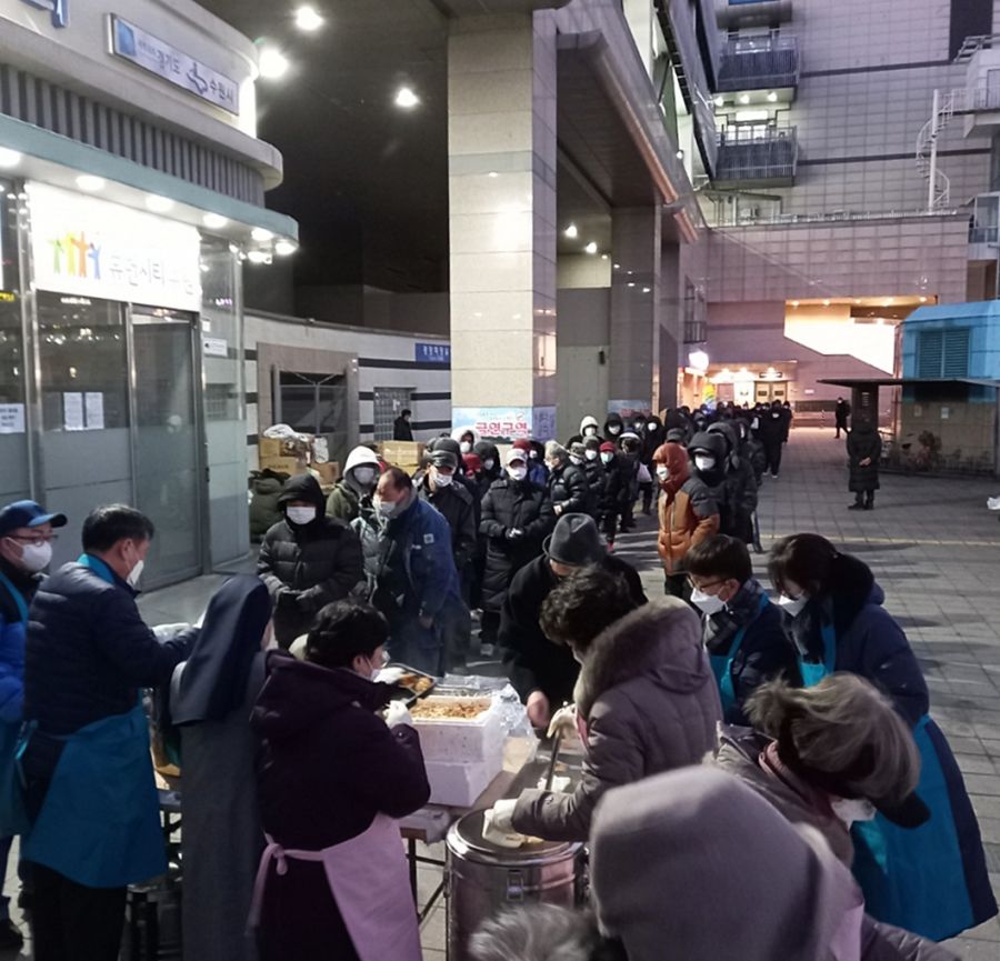 소식 글보기2월 수원역 식사나눔 성빈센트영성센터조회수 228 2022-02-23 15:162월 노숙인 식사나눔은 협력자회 주관으로 진행되었으며, 반올림 나눔회와 소요식당에서 소고기국밥과 음료를 후원해 주셨습니다. 추운날씨에도 불구하고 일찍부터 긴 줄을 서서 기다리시는 93분께 한끼 식사를 대접하였습니다.또 간식으로 한울마루에서 크로상 빵을 직접 구워 후원해 주셔서 노숙인들의 호응을 얻었습니다. 2월 배식은 협력자회 2기생들이 우리의 주님들과 함께하는 기쁨의 시간이었습니다. 카테고리일상 목록답변 댓글 [0] 더보기이전3월 수원역 식사나눔성빈센트영성센터2022-03-22다음수도서원 25주년 감사미사관리자2022-02-11 Powered by MangBoard | 워드프레스 쇼핑몰 망보드