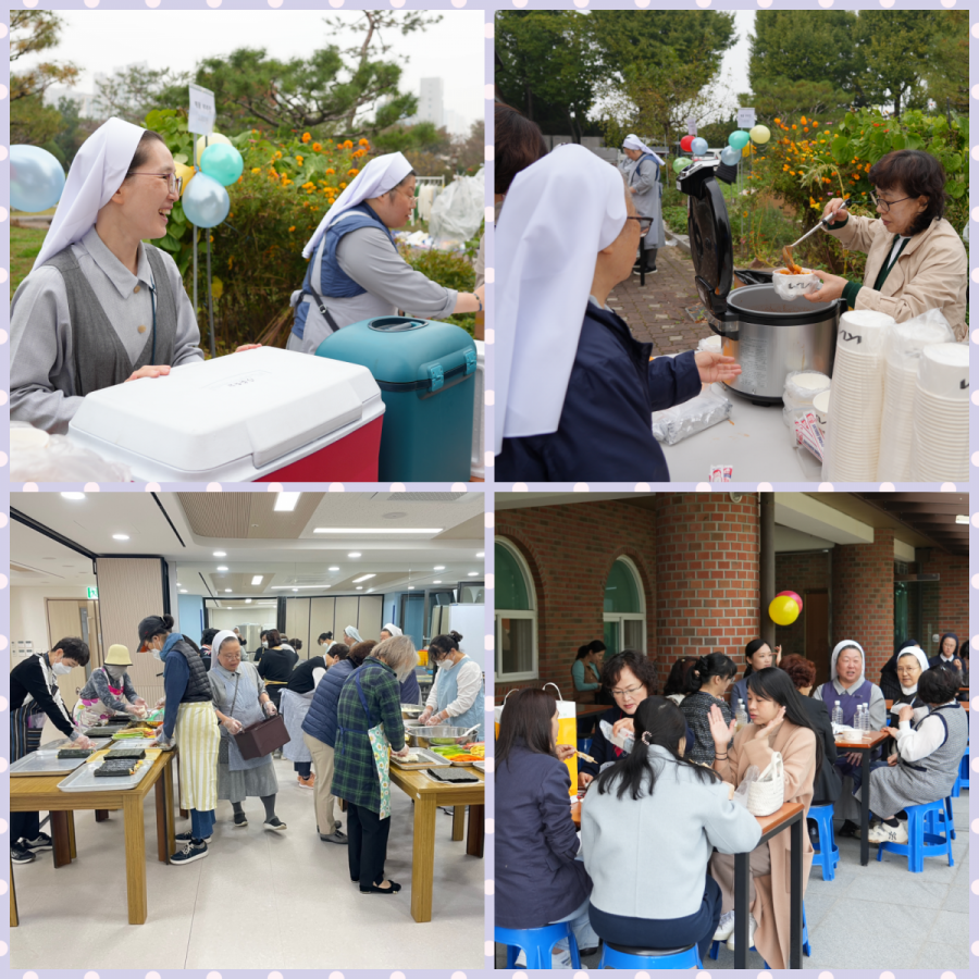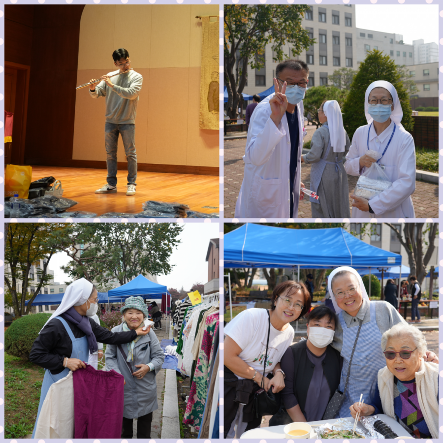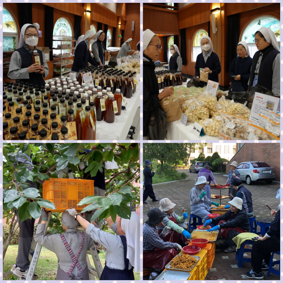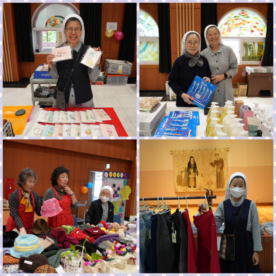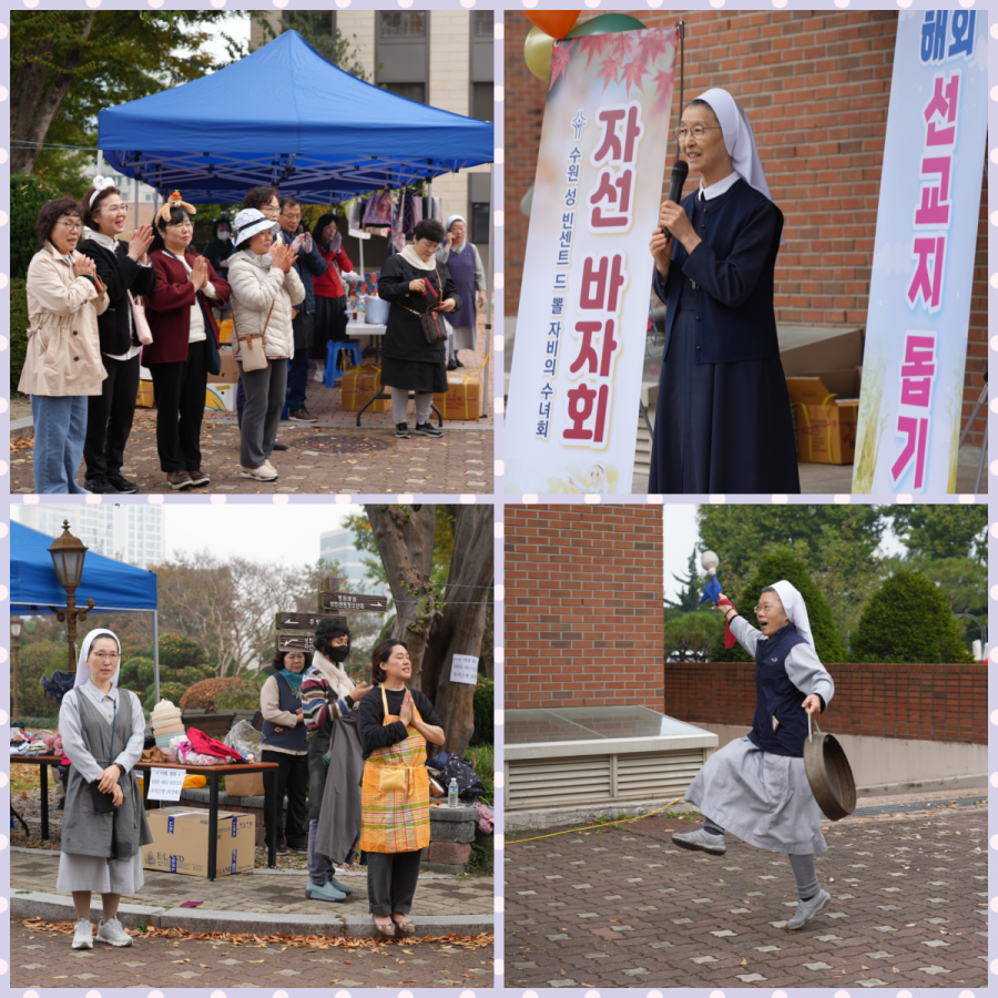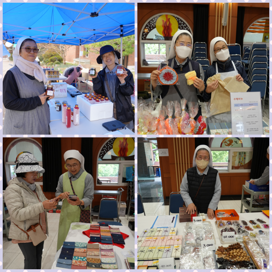 10월의 마지막 날. 빈센트 수녀원에서 해외 선교지 돕기 자선 바자회가 열렸습니다. 수녀님들께서 농사짓고 수확하신 농산품과 수녀원 정원에서 난 과일로 만든 엑기스, 정성껏 만들어 주신 카드, 카드 지갑, 수세미 등 각종 물품들과 먹거리 코너의 김밥, 어묵, 부침개, 식혜, 아로니아 주스 등 많은 분들의 도움으로 풍요로운 바자회가 되었습니다. 퀼트 가방, 뜨게용품 등을 만들거나 화분을 키워서 판매해주시고, 농산물을 구입해 기증해주신 분들도 있었습니다. 이번 바자회의 수익금은 새로 선교를 시작하는 동티모르를 비롯한 해외 선교지의 가난한 이들을 위하여 사용될 예정입니다. 준비에서부터 판매, 정리까지 도와주시고, 나눔의 손길로 함께해주신 모든 분들께 감사드립니다.