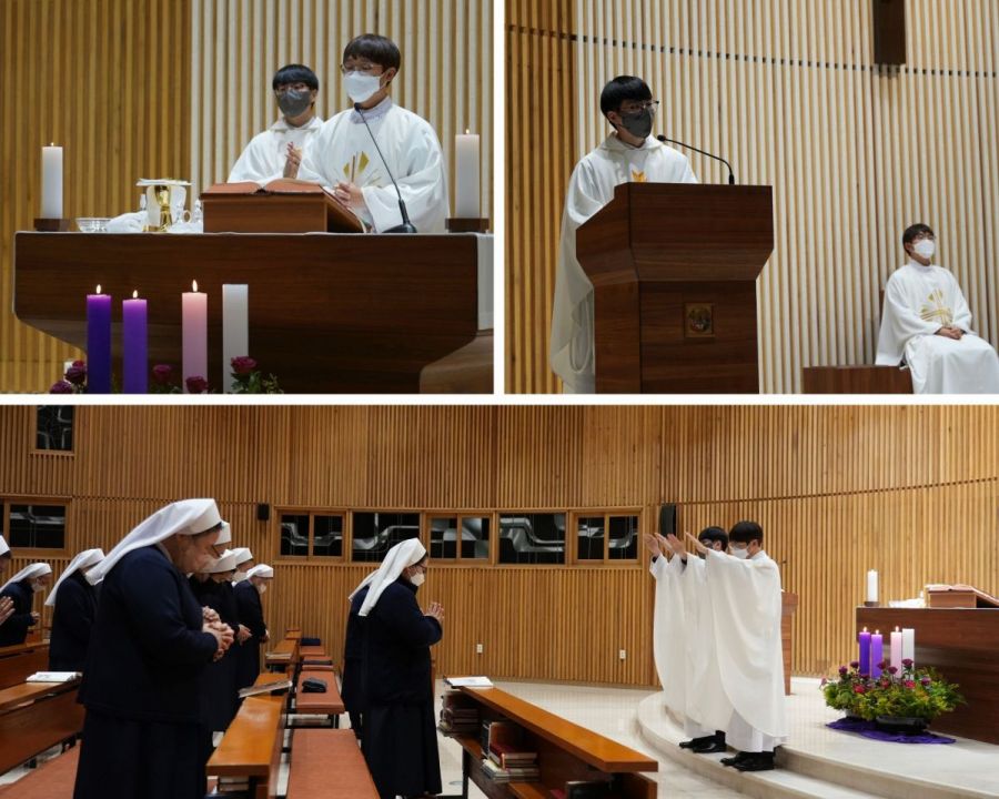 성복동 성당 출신의 송빈 하상바오로 신부님과 서둔동 성당 출신의 이민건 루카 신부님이신데요.  루카 신부님이 미사를 집전하시고 하상바오로 신부님이 강론을 해주시며 본인의 성소 이야기를 나눠주셨습니다.