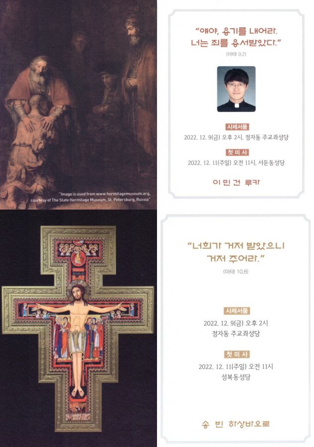 두 분을 비롯한 새사제들이 하루 하루 하느님의 충실한 종으로 소명을 발견해가는 복된 성직의 길을 걸어 나가시기를 기도합니다.