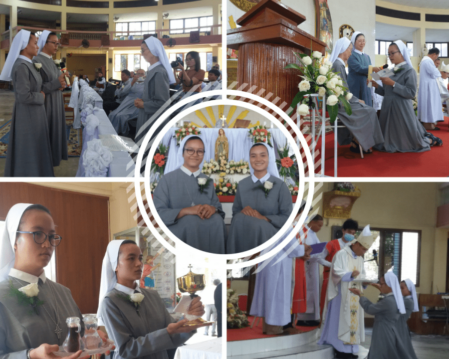 미얀마 수녀님 두 분의 첫서원 미사가 2월 6일 양곤 피터폴 성당에서 양곤대교구 소 노 에 주교님의 주례로 봉헌되었습니다. 첫서원을 하게 된 죠세핀 수녀와 그레이스 수녀는 지난 3년간 필리핀 국제 양성소에서 청원기와 수련기를 마치고 지난 주에 본국으로 돌아갔는데요. 그동안 코로나로 필리핀에서 첫서원을 해왔는데 이번에 5년만에 양곤에서 하게 된 첫서원 미사에 주교님 세 분과 많은 신부님, 수녀님들이 손님으로 오셔서 가족들에게도 큰 기쁨이 되었습니다.
