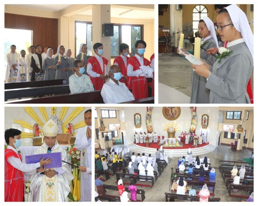 세 분과 많은 신부님, 수녀님들이 참석한 가운데 오랜만에 큰 교회의 잔치를 치렀던 미얀마 공동체 사진입니다.