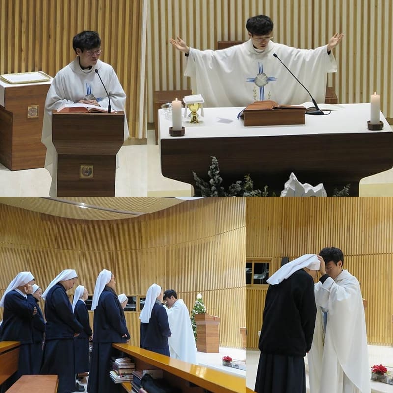 1월 4일 대구대교구 김창욱 프란치스코 새 사제가 미사 봉헌을 하였습니다. 안수 때 한 사람 한 사람에게 “전능하신 천주성부 인자하신 하느님 아버지께서는 친히 우리 수녀님에게 강복하시여 길이 머물게 하시고 날마다 축성생활을 새롭게 하여주소서.”라고 안수기도를 해 주었습니다.