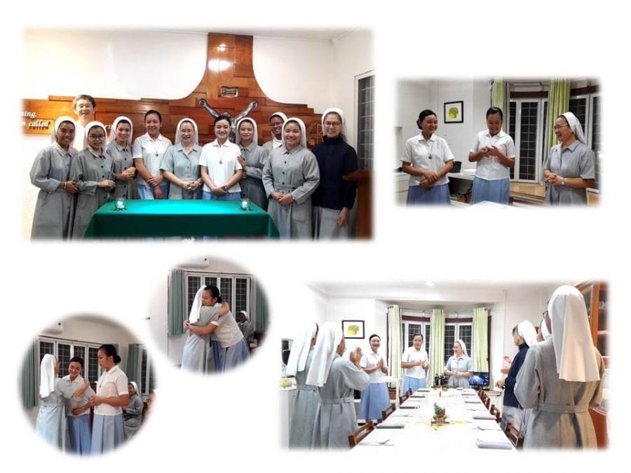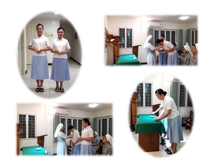 "우리 하느님께서 여러분을 당신의 부르심에 합당한 사람이 되게 하시고 여러분의 모든 선의와 믿음의 행위를 당신 힘으로 완성해 주시기를 빕니다." (테살로니카 후서 1장 11절) 찬미예수님! 존경하올 모든 수녀님들 안녕하세요? 1월 17일 사막으로 나아가 기도와 수덕생활에 열중했던 수도 삶의 교부 안토니오 아빠스 성인 기념일인 어제 필리핀국제 양성소에서 두명의 미얀마 자매, 첼리스티나(Chelestina), 마들렌(Magdelena)이 청원 입회하였습니다. 두 자매가 하느님의 사랑 안에서 빈센트 성인의 영성에 따라 참된 수도 삶을 배워갈 수 있도록 수녀님들의 기도와 사랑과 관심을 부탁드리며 공동체의 기쁜 소식을 함께 나눕니다. 감사합니다.