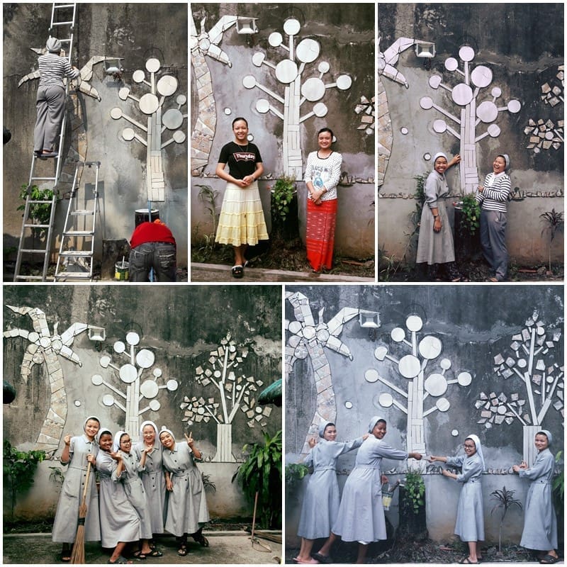 필리핀 양성소에서는 마당에 있는 원두막 뒷벽을 깨진 타일 조각으로 멋지게 꾸몄네요.