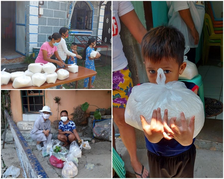 필리핀 빠야따스에서는 방역당국에서 쳐놓은 울타리 안에 격리된 가족에게 장을 봐주는 모습, 쌀 나눔을 하는 모습을 담아 보내주셨습니다. 뭔가 힘을 보태고자 쌀봉지를 받아 안은 저 아이는 무슨 생각을 하고 있을까요?