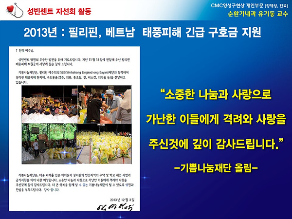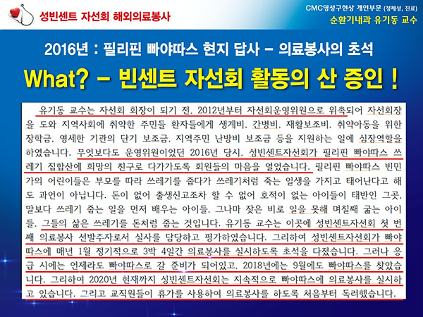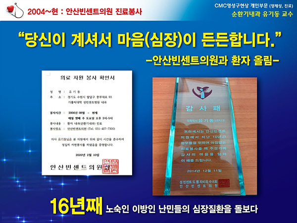 그럼에도 유기동 교수님은 평소 훌륭하신 업적으로 수상의 영예를 안았습니다. 이번 영성구현상 후보 준비에 많은 도움을 주신 신경외과 성재훈 교수, 특수간호팀 김은실 팀장, 심뇌혈관팀 이윤섭파트장, 홍보팀 김성민파트장, 사회사업팀에 감사의 말씀을 드립니다.