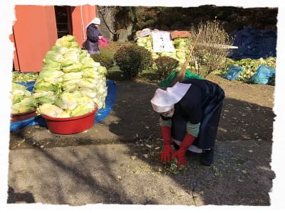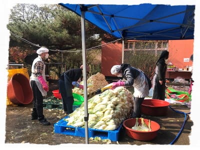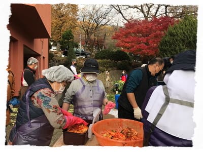 11월 12일~14일에는 수원 교구 생태환경위원회에서 주관한 사랑나눔 김장행사가 있었습니다.  생태환경위원회 동아리 '하느님을 닮은 사람들', 교구 여성연합회, 과천성당, 한울마루 봉사자분들과 수녀님들이 3일간 함께 봉사하며  미리내 성지 내 밭에서 키운 건강한 배추 3000포기를 맛있는 김치로 탄생시켰습니다.