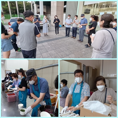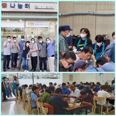 소식 글보기7월 수원역 노숙인 식사나눔 성빈센트영성센터조회수 181 2022-07-20 09:557월은 수원역 노숙인 90명의 우리의 주님들과 식사나눔을 하였다.‘성빈센트 자비의 협력자회’에서 주관하였고, 7기 회원들이 배식봉사를 하였다. 돼기고기 두루치기와 시원한 오이미역냉국이 마음에 드셨는지 몇 번씩 더 드셨다. 수원역 노숙인들이 사용하는 식당인‘정 나눔터’에서 에어컨을 가동해 주셔서, 무더운 여름철에 잠시나마 더위를 잊고 편안히 앉아서 식사하는 모습을 보면서 회원들 모두 행복했다. 카테고리일상 목록답변 댓글 [0] 더보기이전'성빈센트 자비의 협력자회' 사도직체험성빈센트영성센터2022-07-20다음6월 수원역 노숙인 식사나눔성빈센트영성센터2022-06-24 Powered by MangBoard | 워드프레스 쇼핑몰 망보드