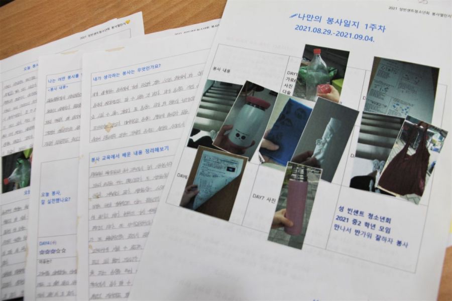 위 사진은 작년에 수원 성빈센트 청소년회에서 실시한 봉사챌린지를 기록한 한 학생의 일지인데요. 수녀님들과 지도자분들의 노력이 친구들의 삶에서 결실을 맺는 모습입니다.