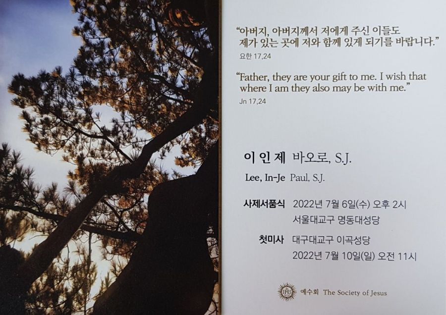 소식 글보기예수회 이인제 바오로 신부님 첫미사 관리자조회수 436 2022-08-26 11:38오늘은 지난 7월 6일에 사제로 서품 받은 예수회 이인제 바오로 신부님이 수녀원 본원에서 첫미사를 봉헌하셨습니다. 상본 사진은 예수님과 사람이 손을 잡은 모습이라고 합니다. 신부님께서는 수녀원 본원 미사 주례를 위해 금요일마다 오실 예정이라고 말씀해 주셨고요.감사드리며, 예수님의 삶과 모범을 닮기를 소망하시는 신부님 위해 저희들도 함께 기도합니다. 카테고리전례/기도 목록답변 댓글 [0] 더보기이전빈마을축제관리자2022-08-30다음예수고난회 박원구 라파엘 신부님 첫미사관리자2022-08-26 Powered by MangBoard | 워드프레스 쇼핑몰 망보드