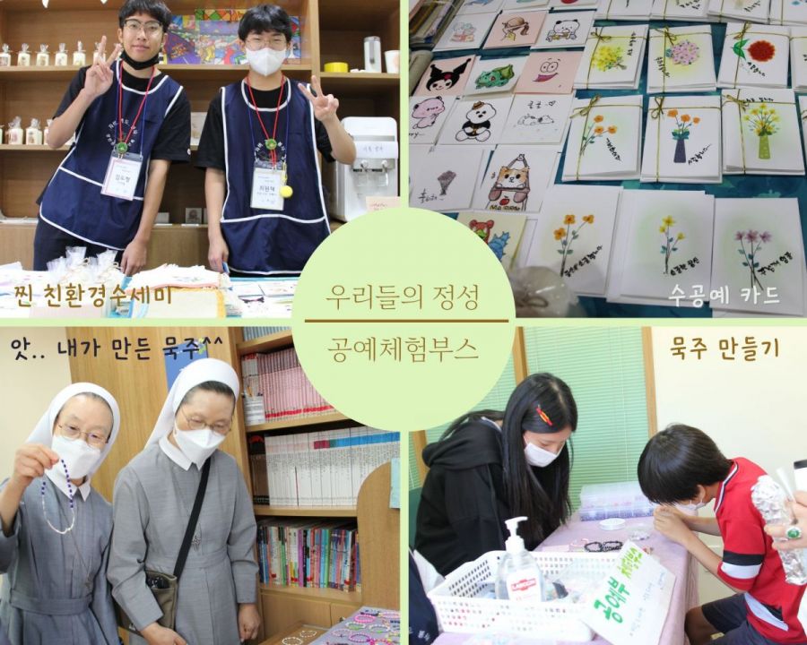 묵주, 쿠키, 레몬청 등을 직접 만들어 기부해주신 분들과 재능기부를 하신 분들, 여러가지로 봉사해주신 학부모님들, 수녀님들, 은인들의 도움으로 공연과 판매, 체험코너들이 다양하고 활기차게 운영되었습니다.
