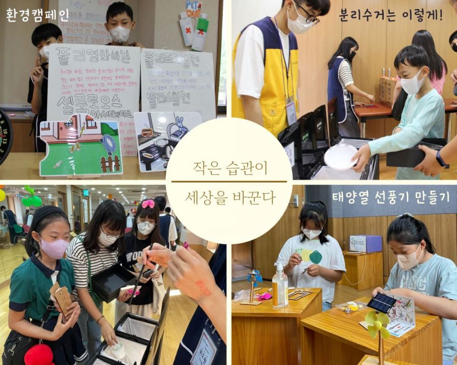 일상에서 흔하게 쓰이는 플라스틱 종류에 대해 알려주며 쓰레기 분리배출에 참여해보게 하거나 태양열 손선풍기를 만들어보는 체험 코너도 있었습니다.