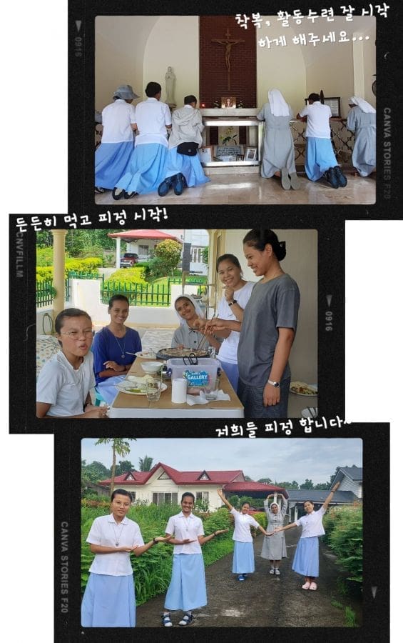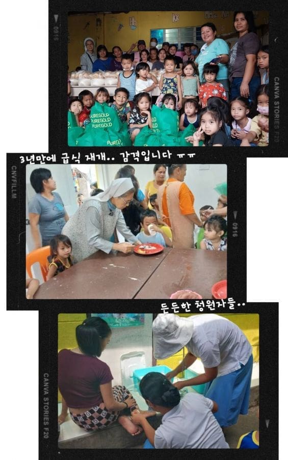 필리핀 빠야따스 급식소 세 곳을 운영하던 저희 수녀님은 그동안 코로나로 쌀나눔으로 대신했던 피딩 프로그램을 개시해서 무척 기뻐하며 소식을 전해오셨습니다. 양성소에서는 미얀마와 방글라데시에서 올 지원자들을 기다리며 청원자들과 법정수련자가 각각 다음 단계로 나아갈 준비를 하는 피정을 했다고 하는데요, 우리 수녀님들이 직접 음식을 해주시며 피정 동반을 하셨습니다.