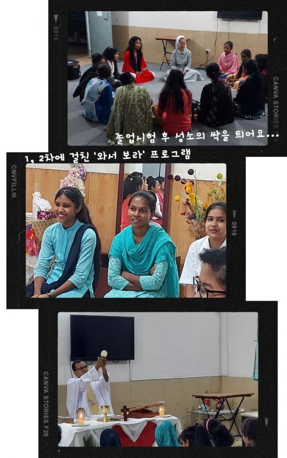 방글라데시에서는 졸업시험을 마친 학생들이 자신의 성소를 찾아가는 여정을 시작하며 수녀원에 와서 4일씩 머물며 함께 지냈습니다. 지원자들이 안내해주는 수녀원 생활 소개, 수녀님들과의 만남, 연극 등을 통해 공동체 생활, 기도 생활을 맛보는 기회가 되었습니다.
