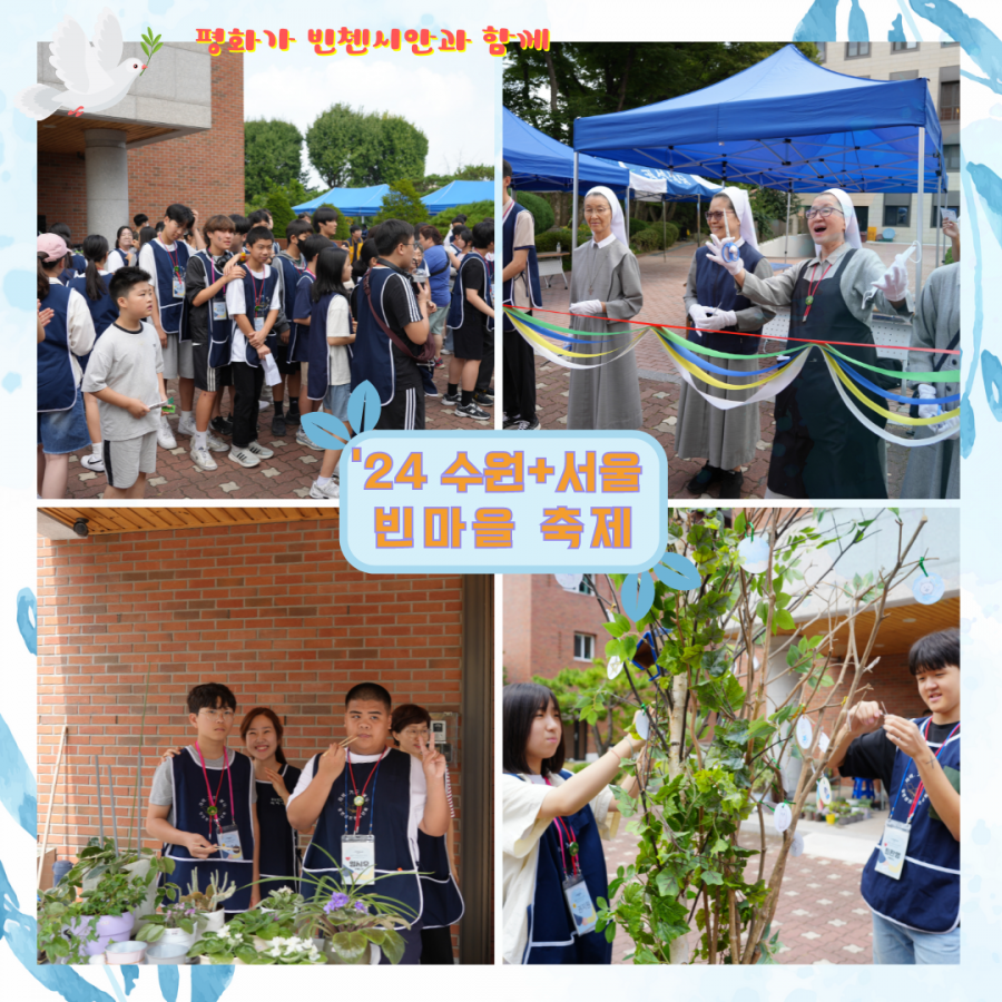 25주년을 맞아 올해는 수원과 서울 빈청이 여러 활동을 같이 하고 있는데요. 이번에는 빈마을 축제를 합동으로 수녀원에서 개최하였습니다. 매년 축제를 통해 마련한 기금으로 어려운 이웃들을 직접 돕고 있는 빈청 친구들이 이번에는 수익금으로 연탄배달 봉사와 빠야따스 선교지 방문을 하기로 하였습니다.