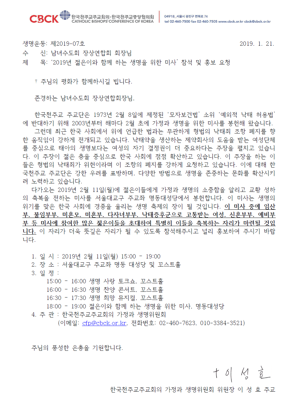 공지사항 제목2019년 젊은이와 함께 하는 생명을 위한 미사 알림2019-01-23 14:33작성자비서실첨부파일생명을위한미사.pdf (135.6KB) +평화수녀님들께2019년 젊은이와 함께 하는 생명을 위한 미사에 대하여 알려드리오니 참고하시기 바랍니다.-비서실 올림- 추천(0)목록답변 댓글 [1] 댓글작성자(*)비밀번호(*)자동등록방지(자동등록방지 숫자를 입력해 주세요)내용(*) 댓글 등록 더보기이전〔 미사 〕자선사도직 후원회 2월 미사 안내자선사도직후원회2019-02-13다음【 미사 】자선사도직 후원회 19년 1월 미사 안내자선사도직후원회2019-01-04 Powered by MangBoard | 워드프레스 쇼핑몰 망보드
