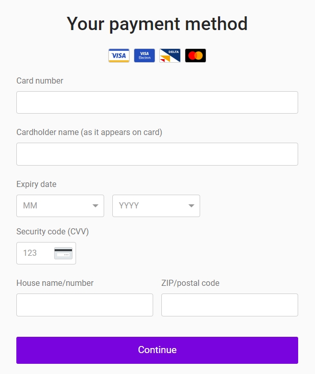 그대로) -Expiry date 유효기간 (월/년) (카드 뒷면에 기재된 순서대로 -Security code(CVV) 보안 코드 (카드 뒷면 서명란에