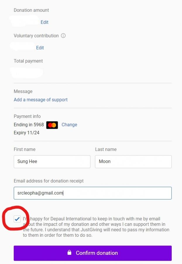 후 Confirm donation 클릭