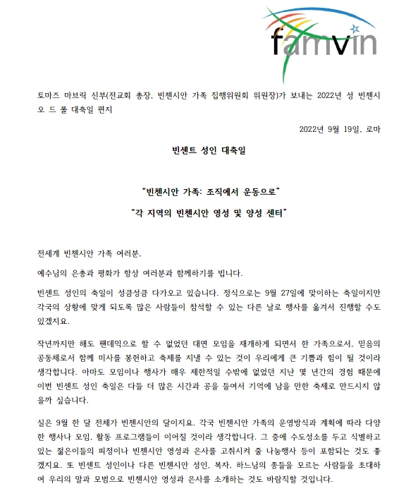 제목빈첸시안 가족에게 보내는 빈센트 대축일 편지_토마즈 마브릭 신부2022-09-26 16:45