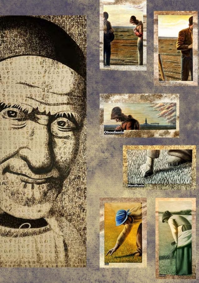 빈센트 성인의 초상이 있습니다. 성인의 얼굴은 셀 수 없이 많은 사람들의 얼굴이 모여 이루어져 있고